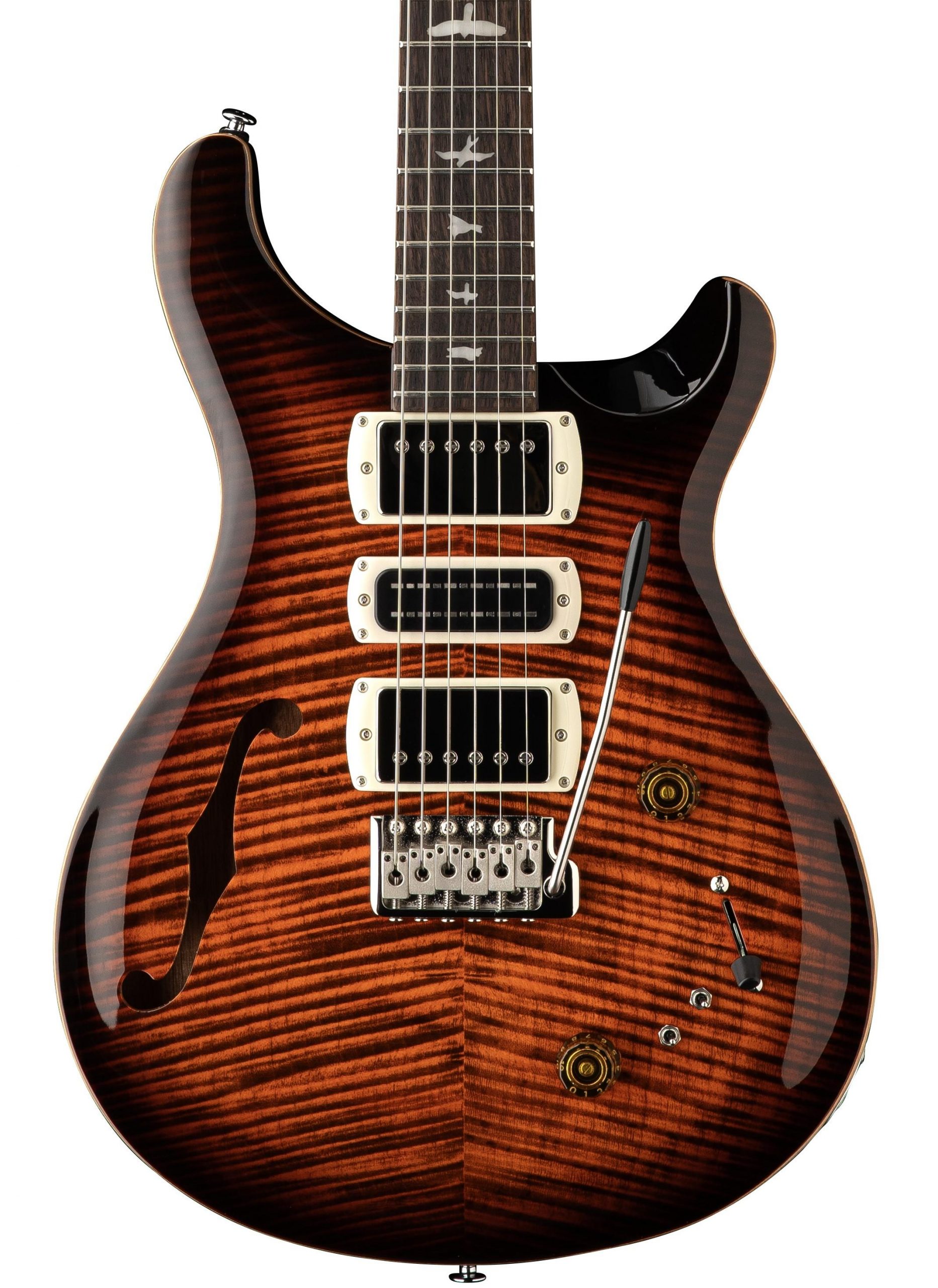 The PRS SE Special Semi-Hollow is equipped with a pair of 58/15 LT “S” pickups with a PRS Narrowfield DD “S” in the middle position and a versatile coil-tap setup that unlocks a wide range of tones—from warm, full humbucker sounds to crisp single-coil chime. This three-pickup configuration allows for unique tonal options, making this model a go-to for genres ranging from jazz and blues to rock and beyond. Finished with PRS-designed tuners and the patented PRS tremolo bridge, the PRS SE Special Semi-Hollow delivers roadworthy reliability with studio-worthy tone.